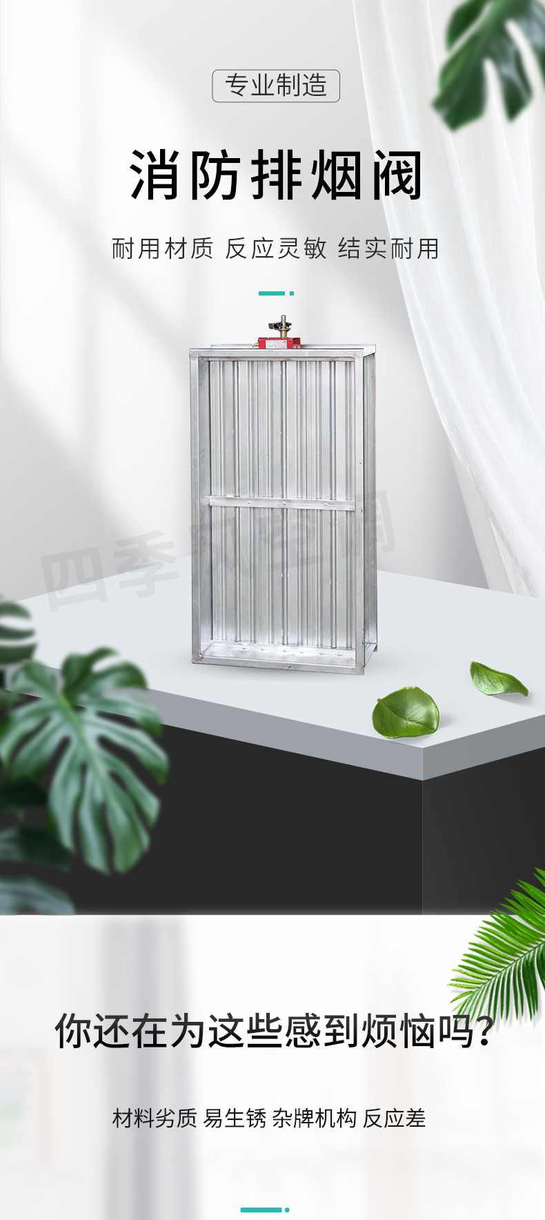 靖江市四季風空調設備有限公司——排煙防火閥平時常開;溫感器280℃自動關閉,手動關閉,輸出關閉信號;手動復位。